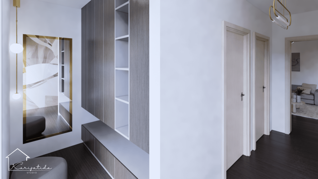 Mlada obitelj kao zahtjev je imala urediti svoj novoplanirani životni prostor kao funkcionalnu i modernu cjelinu.