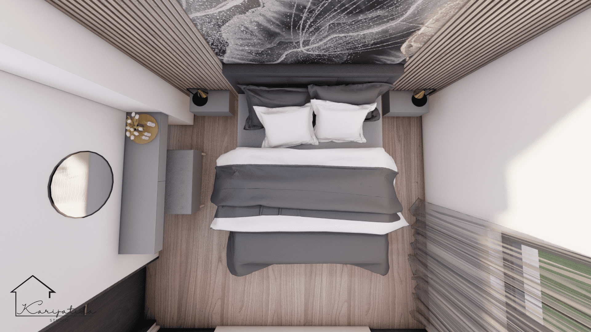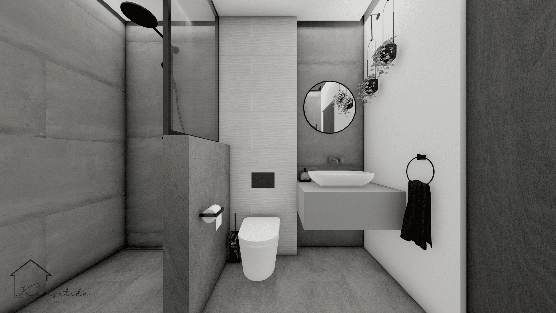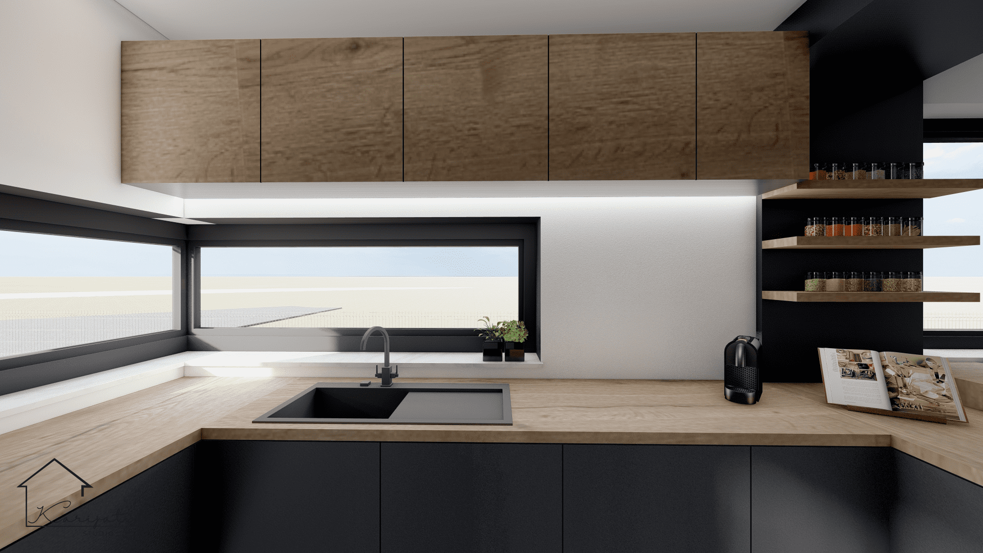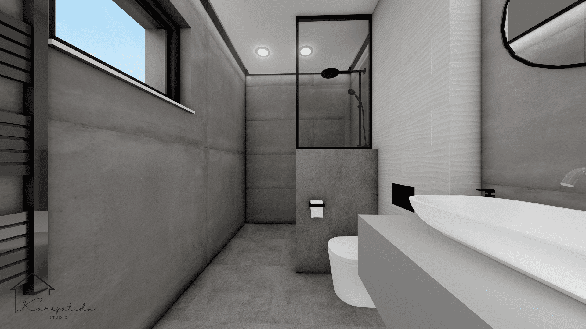 Predmet projekta bilo je prizemlje obiteljske kuće koje se sastoji od ulaznog prostora, gostinjskog toaleta koji je ujedno i praonica, roditeljske spavaće sobe sa pripadajućom garderobom i kupaonicom te otvorenog prostora kuhinje, blagovaonice i dnevnog boravka.