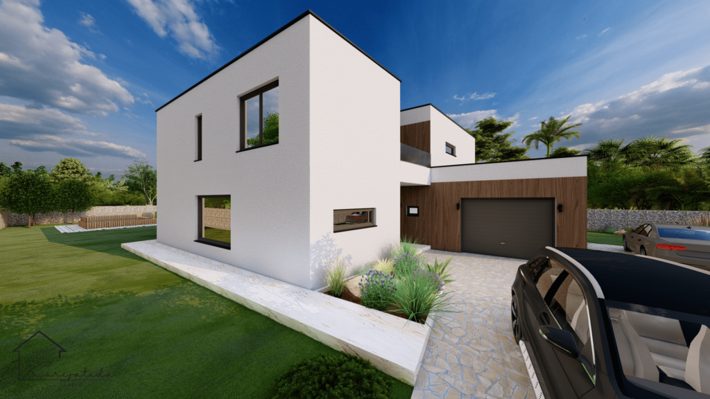 PROJEKT PULAEksterijer OBITELJSKA KUĆA Pula I Hrvatska I 220 m2 O projektu: Prostrana obiteljska kuća u Puli obiluje staklenim stijenama što omogućava povezivanje interijera i eksterijera. Kombinacija bijele fasade i fasadne obloge u imitaciji drva daju elegantan izgled eksterijera. GALERIJA: