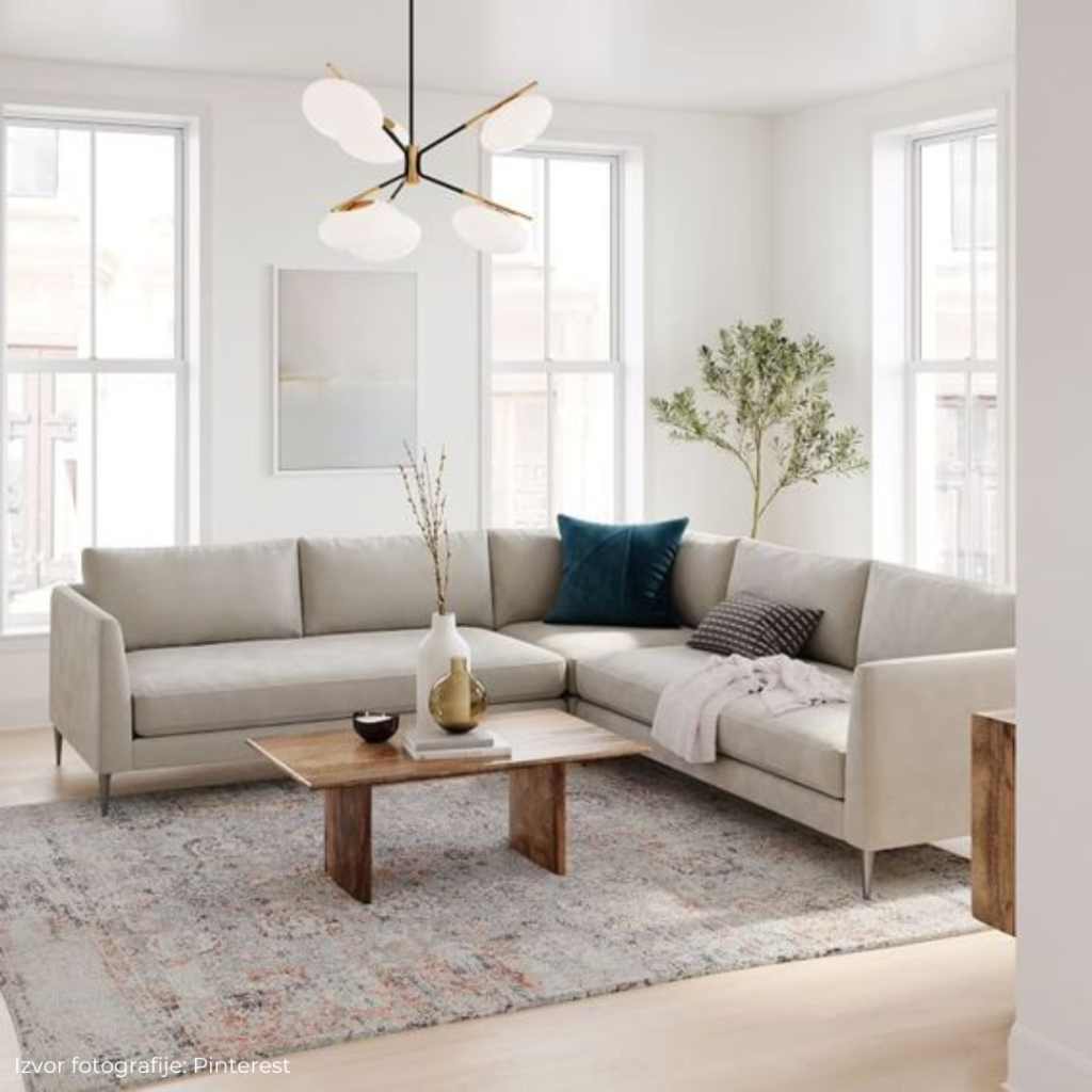 Naprimjer; L oblik kauča umjesto dvosjeda i fotelja.