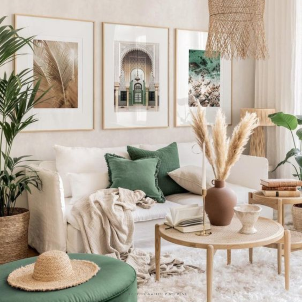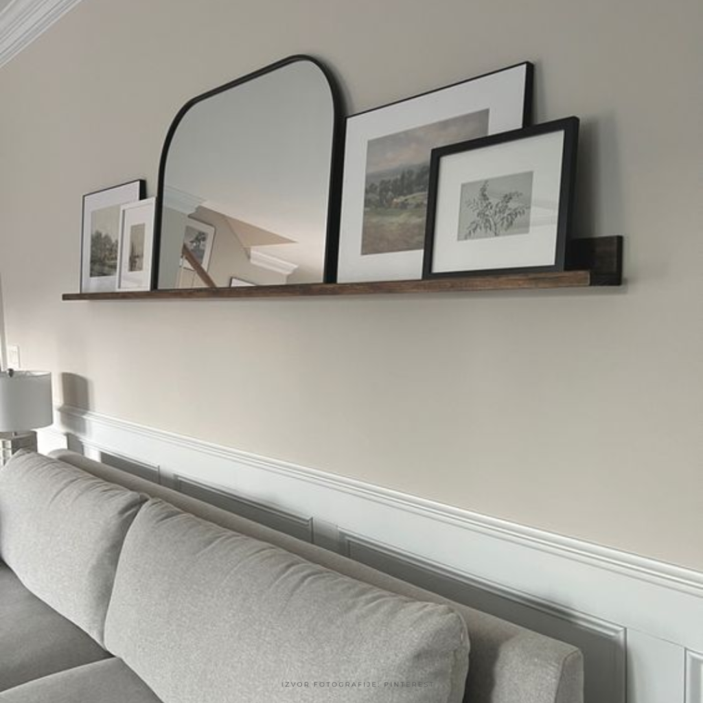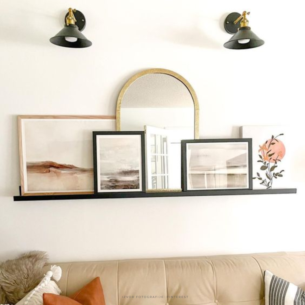 Birajte ogledalo nepravilnog oblika, a okvire fotografija birajte u monokromatskoj paleti ili pak posegnite za vintage okvirima, uz to na policu dodajte biljke ili vaze i stvorite promišljeno stilizirani kutak prostora bez velikog napora i ulaganja.