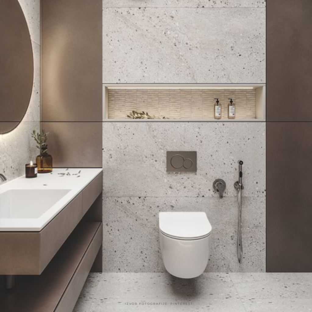 Suhe niše pak možete postaviti u produžetku ugradbenog vodokotlića, uklopiti ih u dizajn umivaonika i ogledala ili ih tretirati kao zasebni element u prostoru.