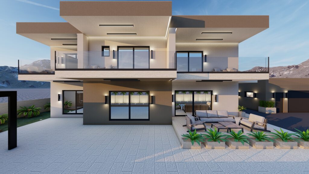 Investitorova vizija bila je stvoriti dom koji će estetski i funkcionalno biti usklađen s okruženjem, naglašavajući harmoniju između modernog eksterijera i prirodnih elemenata.
