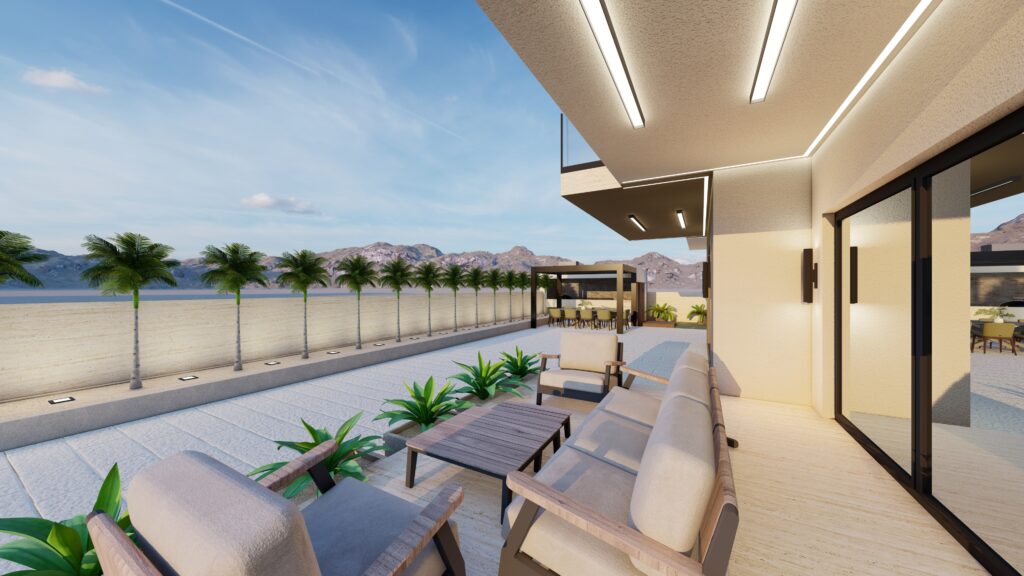 Prostrane terase, minimalistički arhitektonski elementi i velikodušni stakleni otvori omogućuju maksimalno uživanje u prirodnoj svjetlosti.